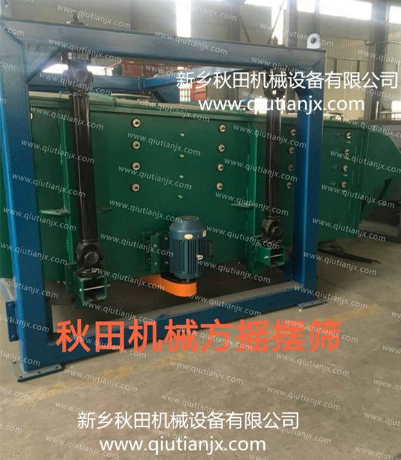 通過方型精密搖擺篩將振動器發生振動加搖擺運動,傳至篩面,從而使物料在篩機前部迅速分散,從而達到篩分之目的。